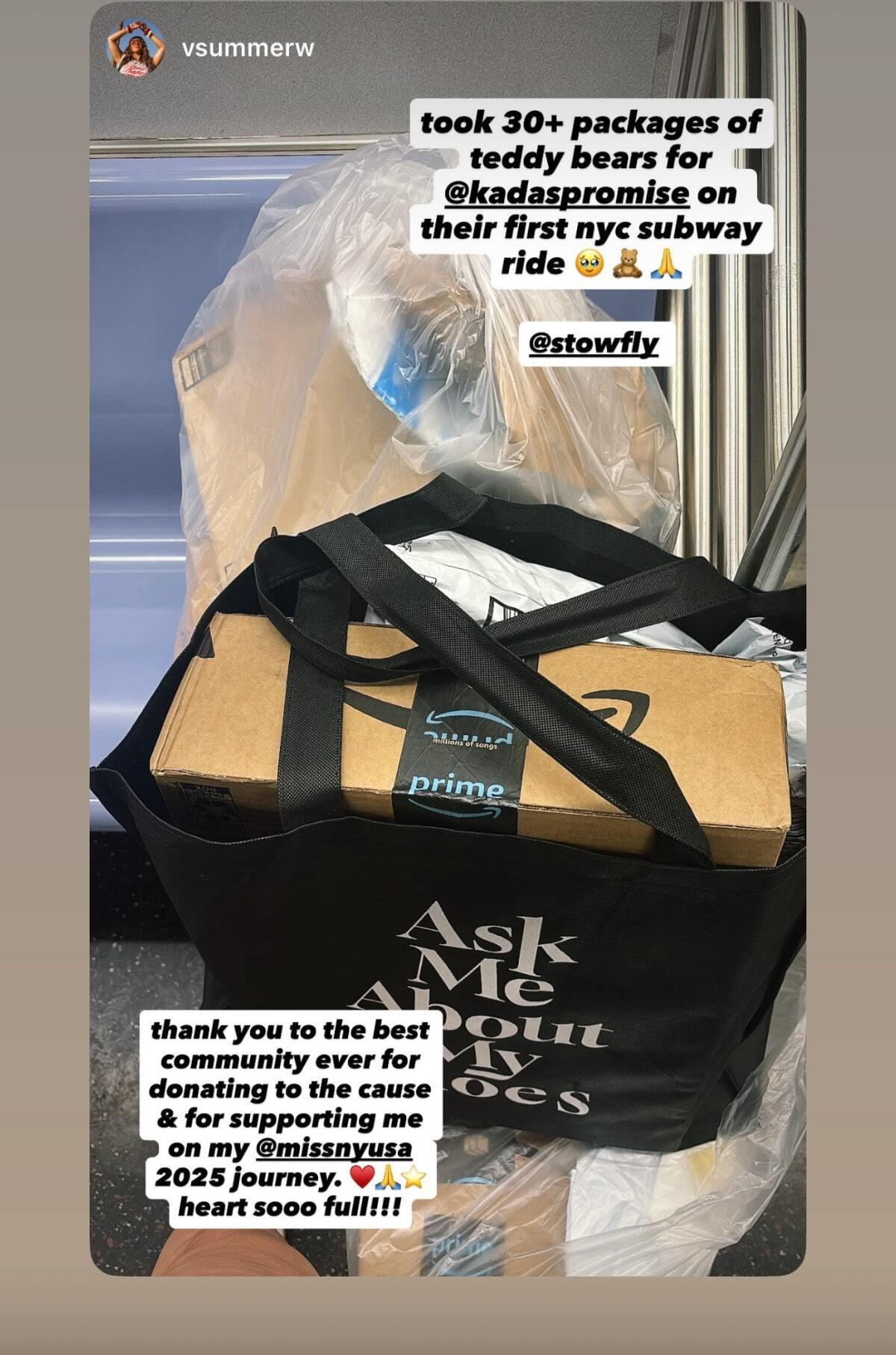 “For the next week, I’ve partnered with @stowfly to collect teddy bears for @kadaspromise as part of the Miss New York USA Social Impact initiative. ”