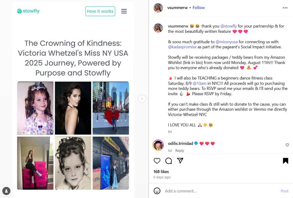 When we last shared The Crowning of Kindness, Miss New York USA 2025 finalist Victoria Whetzel had just partnered with Stowfly and Kada’s Promise to launch a teddy bear drive for children facing abuse, neglect, homelessness, and serious illness.